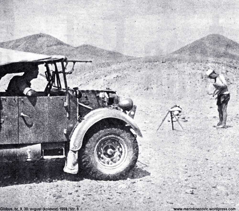 O tome govori reportaža “Osuđena Sahara” (Globus, br. 9, 30. kolovoz (august) 1959., str. 7 – 9). Novinari predstavljaju rad stručnjaka zagrebačkih “Geoistraživanja” u egipatskom dijelu Sahare. Njihova potraga za vodom trebala bi završiti pretvaranjem pustinje u cvjetni vrt – izraz društvene i tehnološke moći jugoslavenskog, socijalističkog društva koja trijumfira i u dalekim krajevima svijeta.
