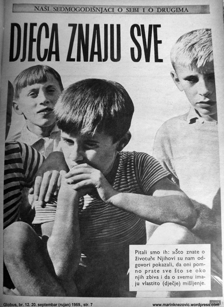 U broju 12 (20. rujan/septembar 1959.) „Globus“ je objavio članak „Djeca znaju sve“ (str. 7 – 11). Članak je bio rezultat anketiranja više od 250 sedmogodišnjaka na području tadašnje Jugoslavije.