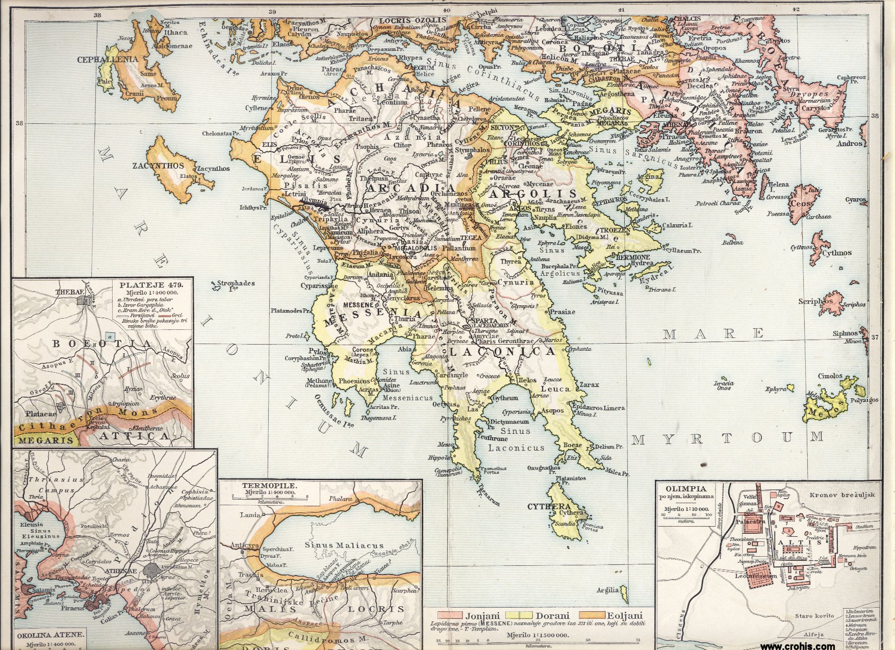 Antička Grčka, južni dio. Termopile. Okolina Atene. Olimpija. Plateje.