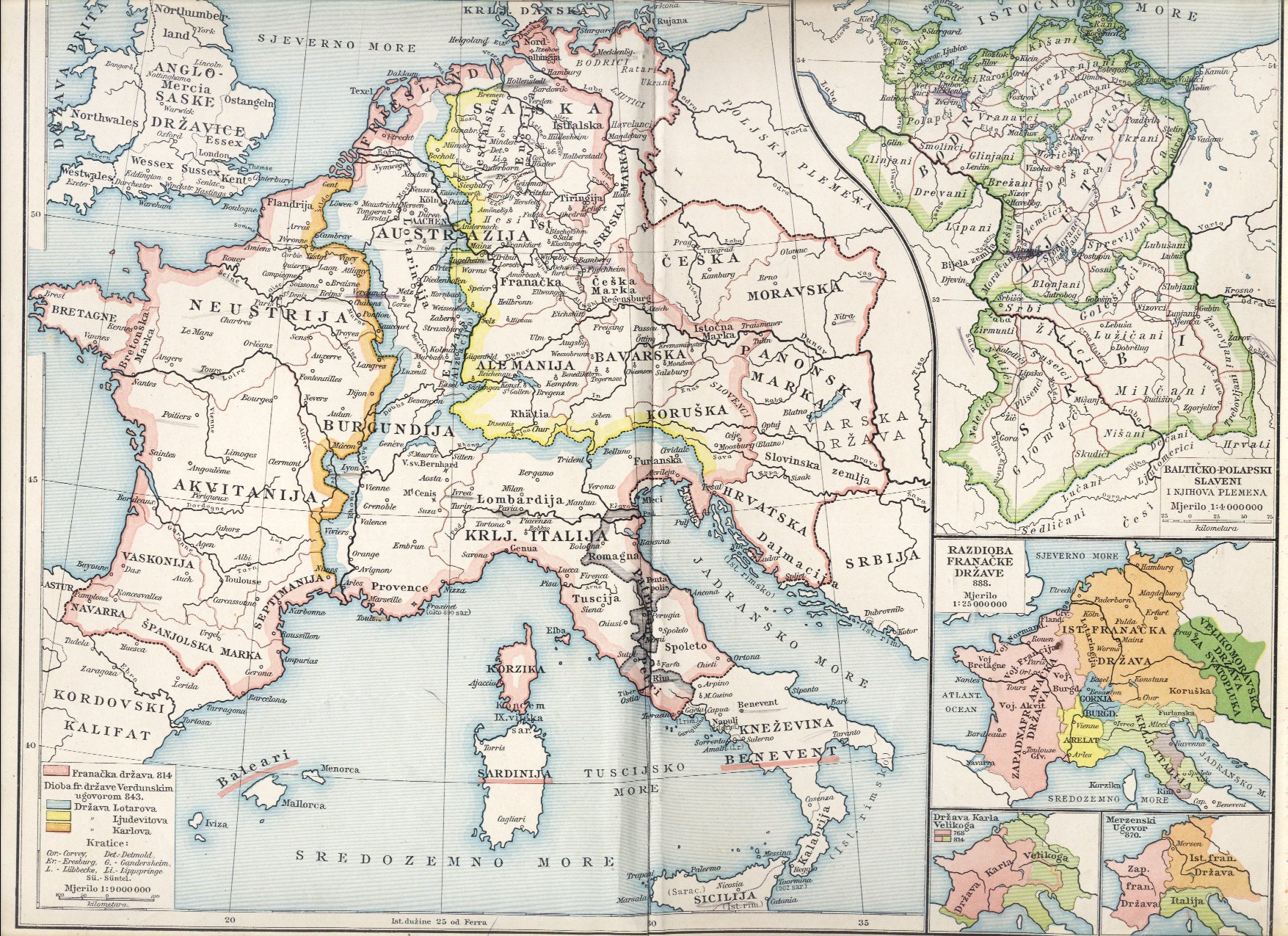 Srednja Evropa za Karlovića. Baltičko-polapski Slaveni i njihova plemena. Država Karla Velikog 768. i 814. Merzenski ugovor 870. Razdioba franačke države 888.