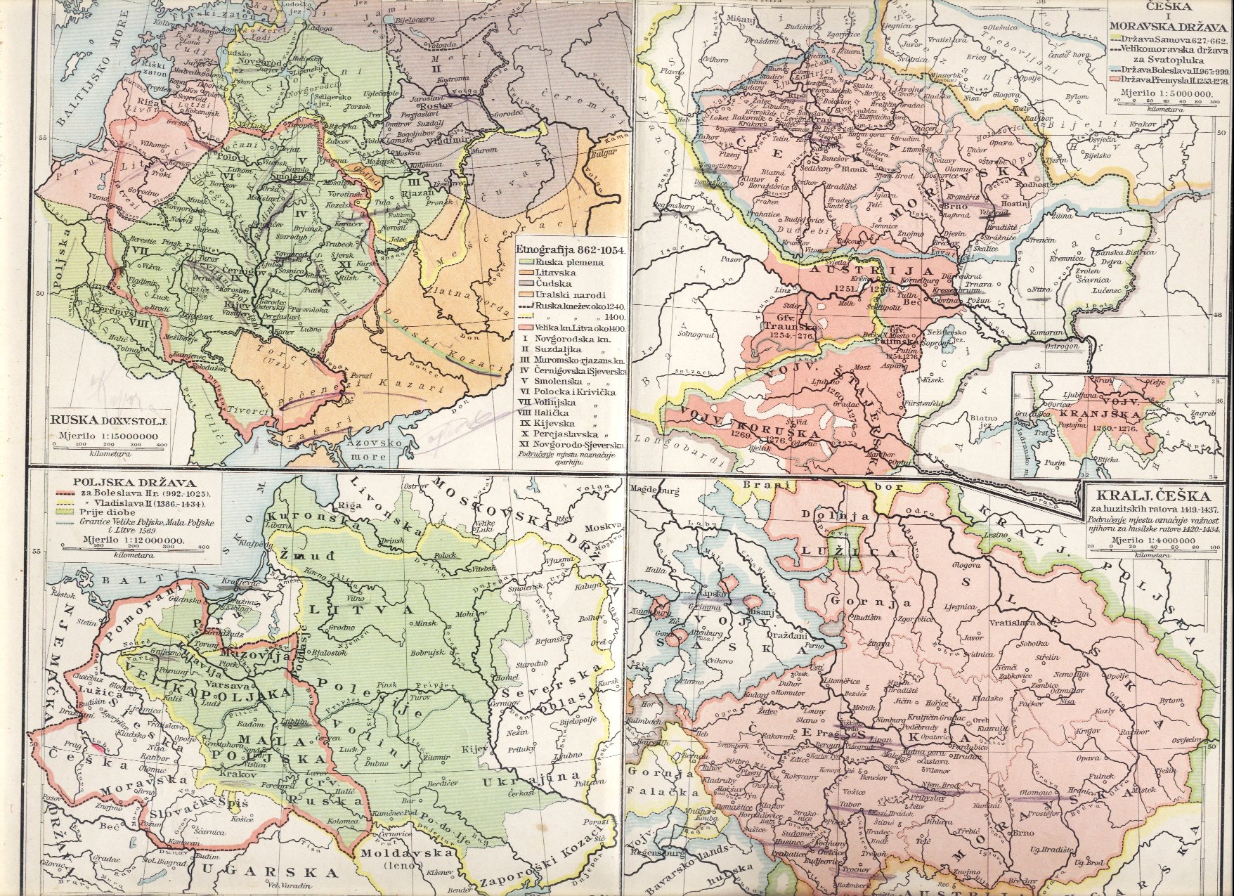 Karte potječu iz Putzgerova historičkog školskog atlasa za stari srednji i novi vijek, Beč 1904.(prema njemačkom i češkom izdanju hrvatsko je izdanje uredio Stjepan Srkulj)