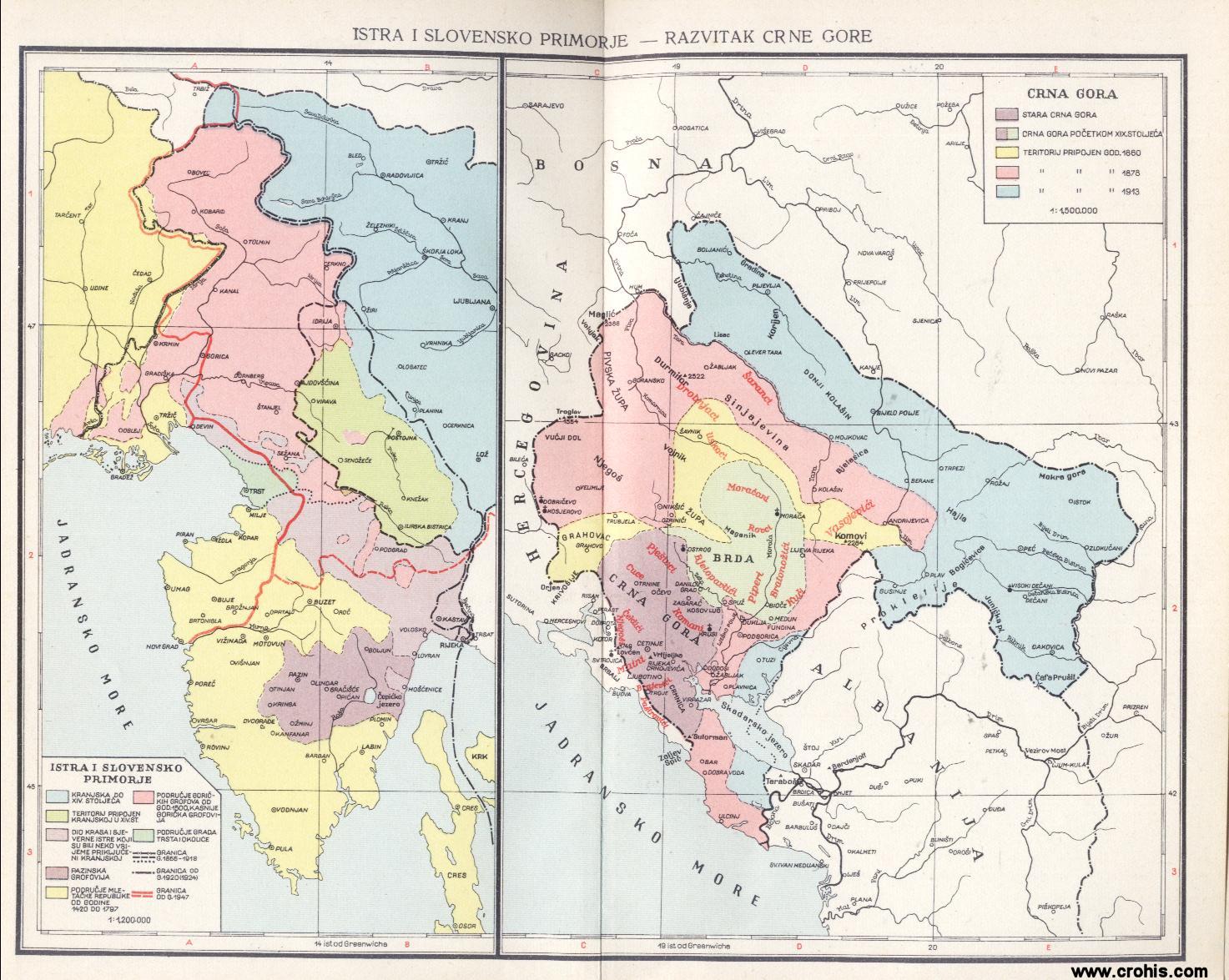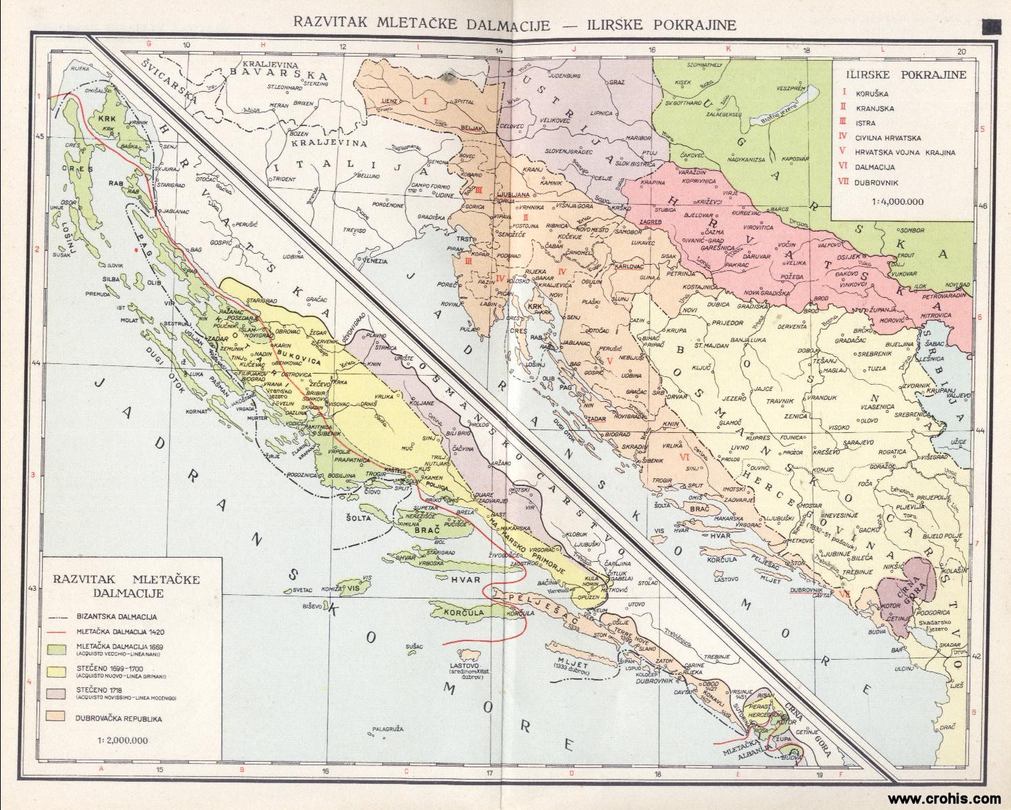 Karte potječu iz Historijskog atlasa za niže razrede srednjih škola, Zagreb 1954.