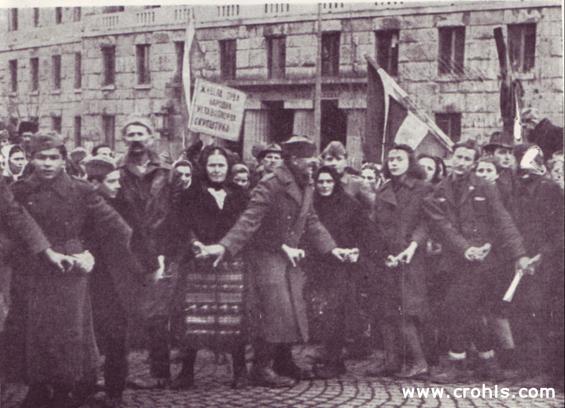 Proslava proglašenja republike. Proglašenje republike 29. 11. 1945., trebalo je pratiti i veliko narodno veselje. Pri tome su seljaci, koji su činili uvjerljivo najveći dio stanovništva nekadašnje Jugoslavije, moraliimati važnu ulogu. Tako su u Beograd došli i seljaci iz obližnjeg sela Belog Potoka. Posebno je bilo važno isticanje „zadovoljstva“ novom državom tradicionalno monarhistički usmjerenog srbijanskog seljaštva. Obratite pozornost na slike Tita i Staljina koje seljaci nose. Za njih oni imaju jednaku važnost.