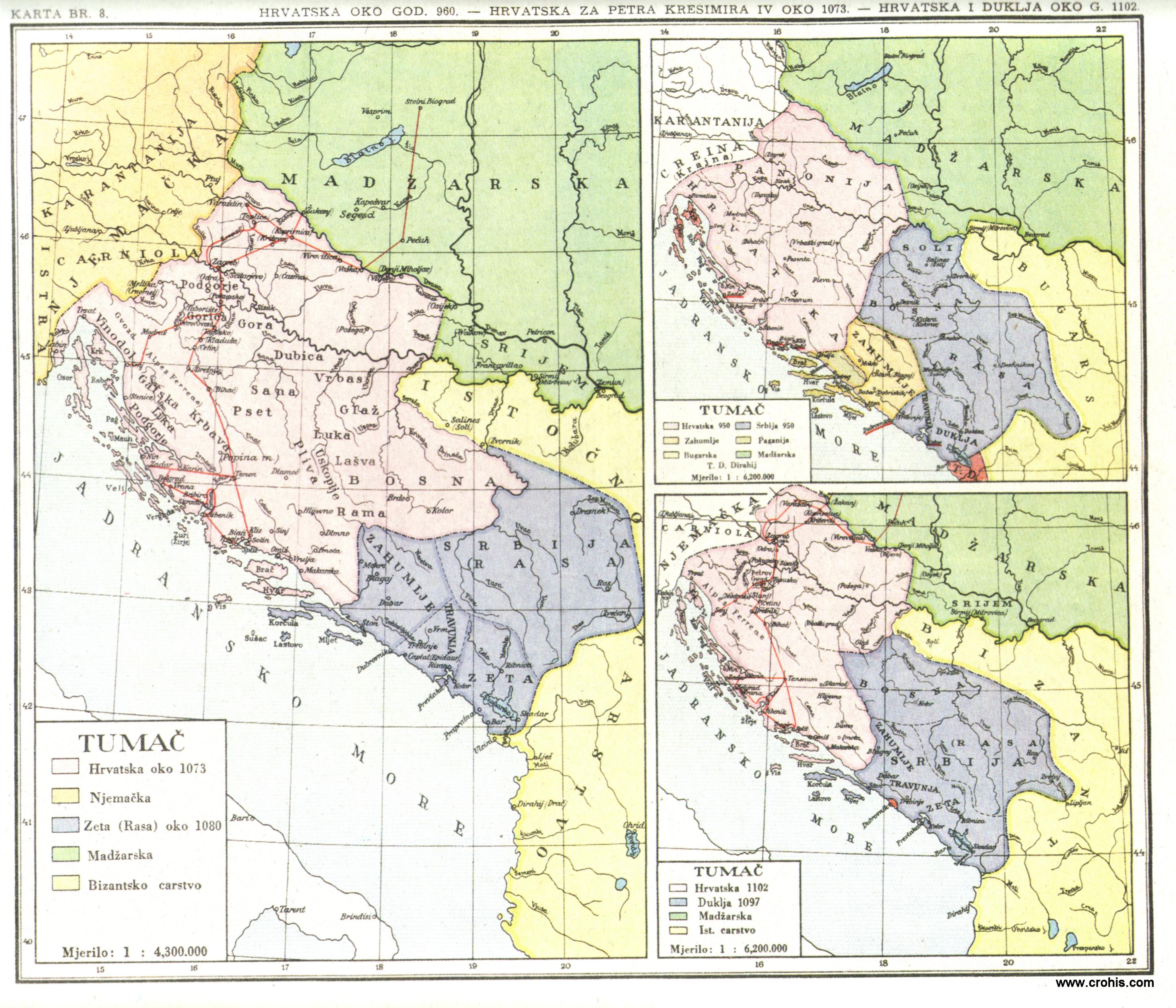 Hrvatska oko god. 960., Hrvatska za Petra Krešimira IV. oko 1073., Hrvatska i Duklja oko g. 1102.