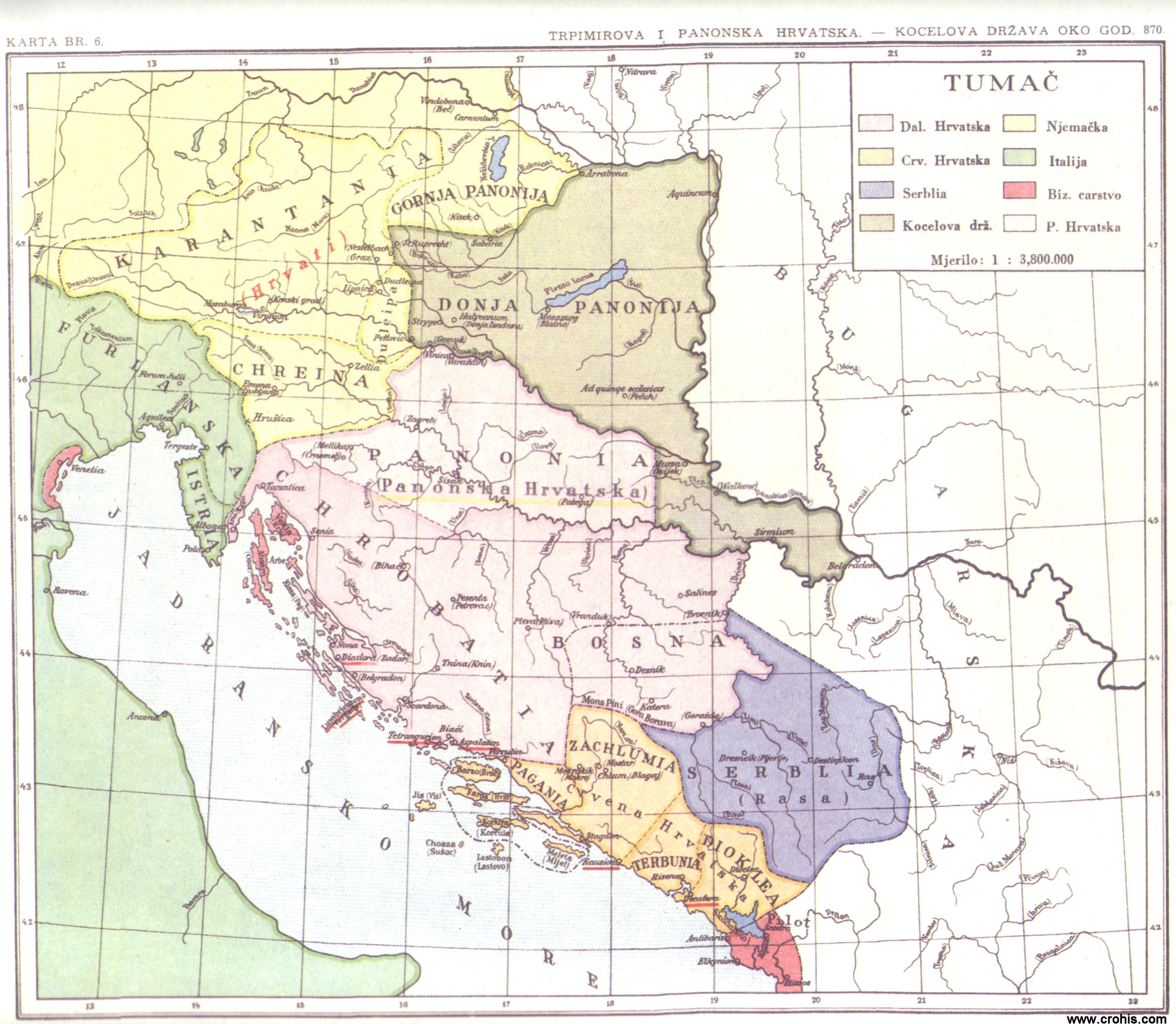 Trpimirova i Panonska Hrvatska, Kocelova država oko god. 870.