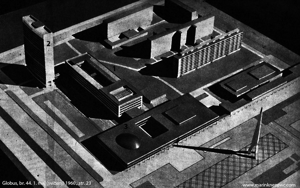 Maketa kompleksa zgrada zagrebačke gradske uprave. Od makete je ostvaren samo središnji objekt (1) u kome se danas nalazi zagrebačko gradsko poglavarstvo. Zapadno od zgrade poglavarstva trebao je biti izgrađen neboder (2) u kome su trebali biti smješteni uredi gradskih upravnih odjela i instituta. Istočno od poglavarstva, vezana za njega nadvožnjakom (zato danas se moramo penjati stepenicama do poglavarstva) trebala se nalaziti dvorana „Narodnog odbora” (3), odnosno gradske skupštine.