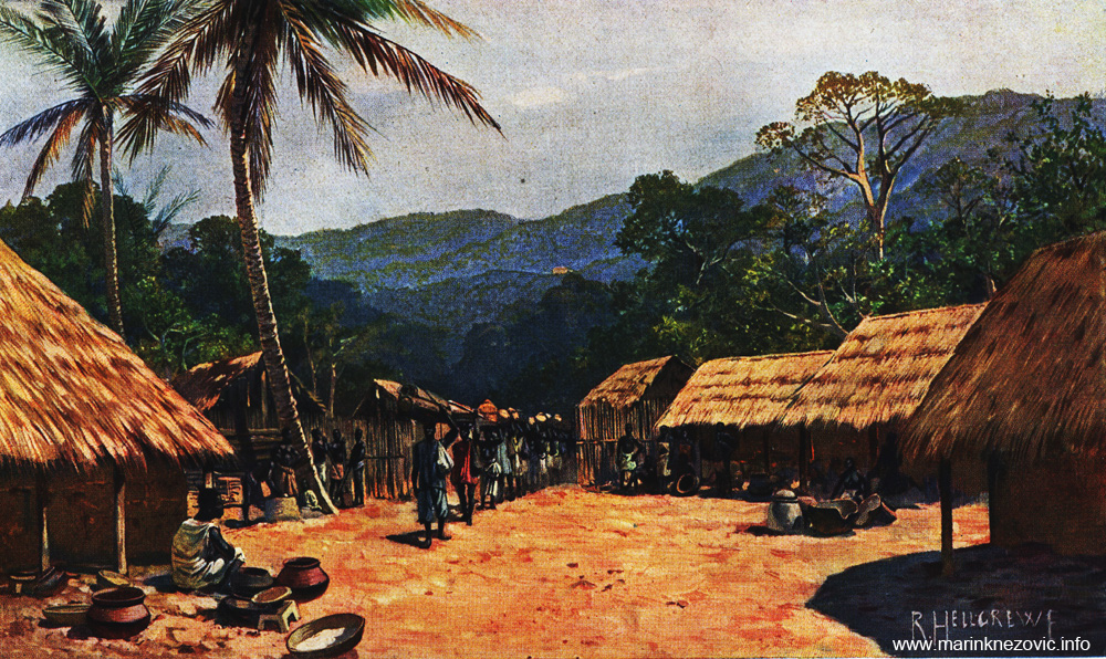 Selo naroda Ewa kod Bismarckburga (Konkoa) u Togu prilikom ulaska karavana naroda Haussa / Dorf der Ewe-Neger bei Bismarckburg (710 m) im Inneren Togos mit einziehender Haussa-Karawane lokacija