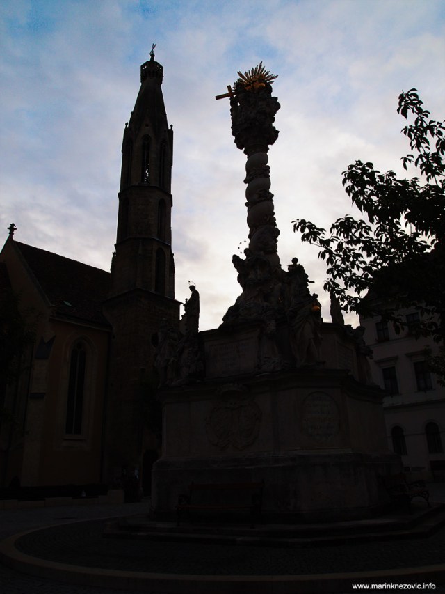 Slike Vatrogasnog tornja (12. st.),franjevačke “kozje”crkve (13. st.) i stupa Sv. Trojstva (18. st.).
