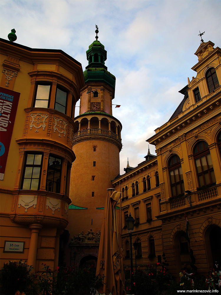 Slike Vatrogasnog tornja (12. st.),franjevačke “kozje”crkve (13. st.) i stupa Sv. Trojstva (18. st.).
