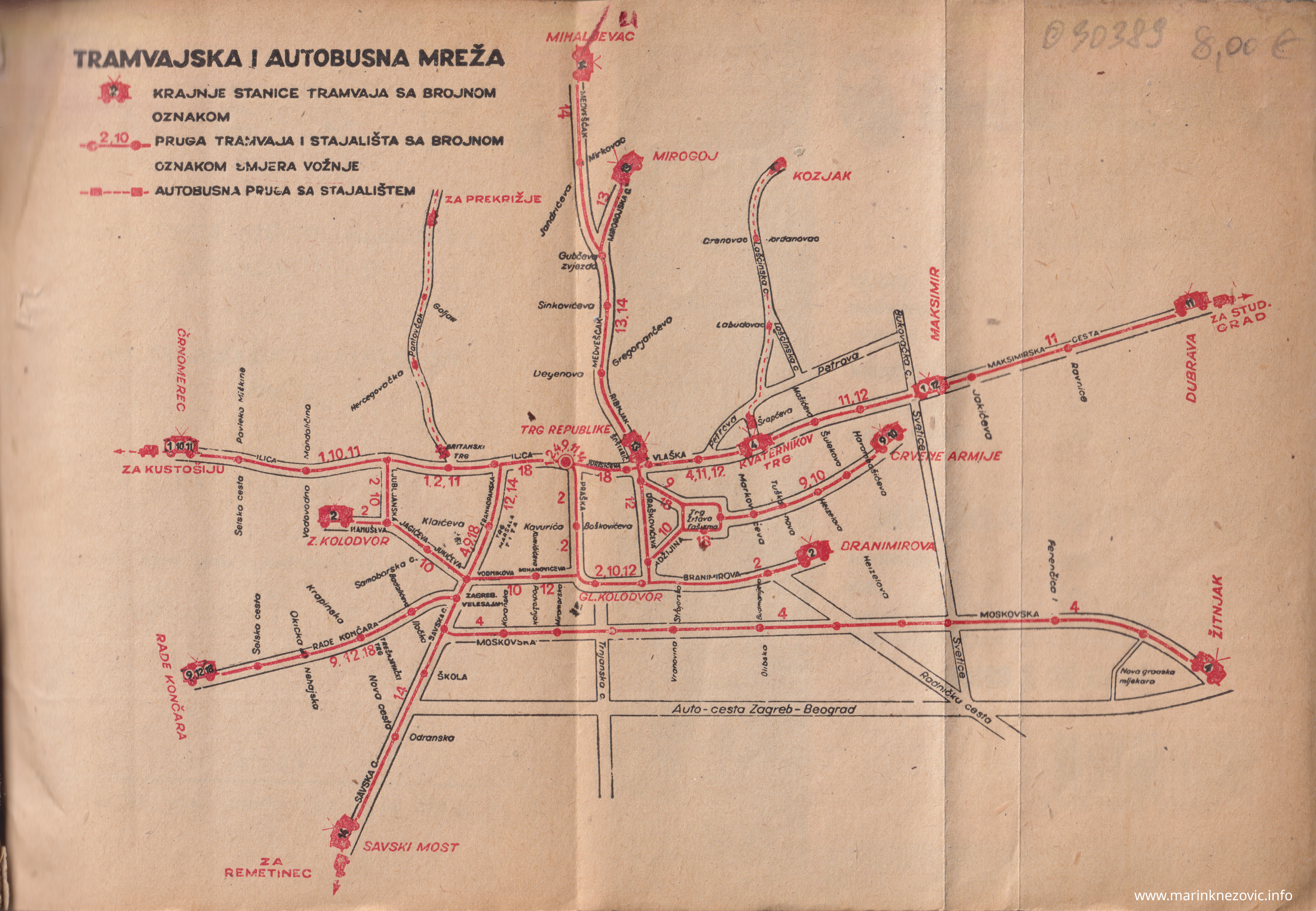 Mape grada Zagreba iz “Zagreb, ulice, ceste, nadleštva, ustanove i.t.d., Plan tramvajske i autobusne mreže, Plan grada”, 3. ispravljeno i nadopunjeno izdanje, Turist, Zagreb, 1951.