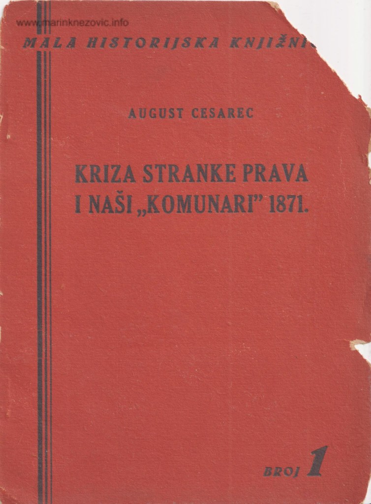August Cesarec, Kriza Stranke Prava i naši komunari, Zagreb 1951.