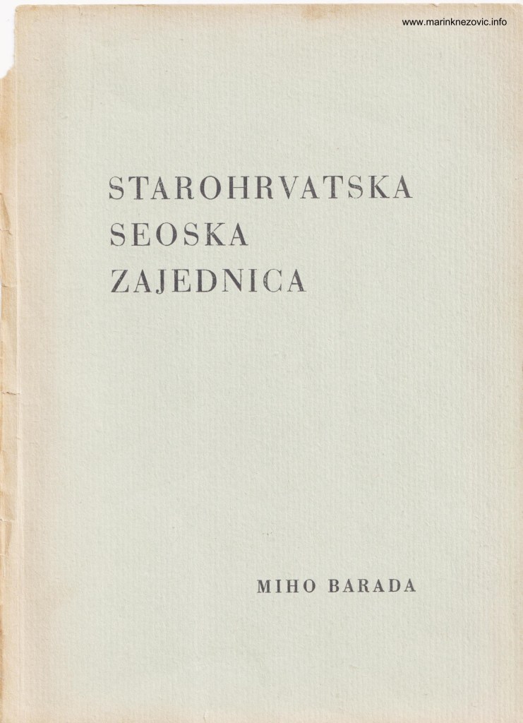 Miho Barada, Starohrvatska seoska zajednica, Zagreb 1957.